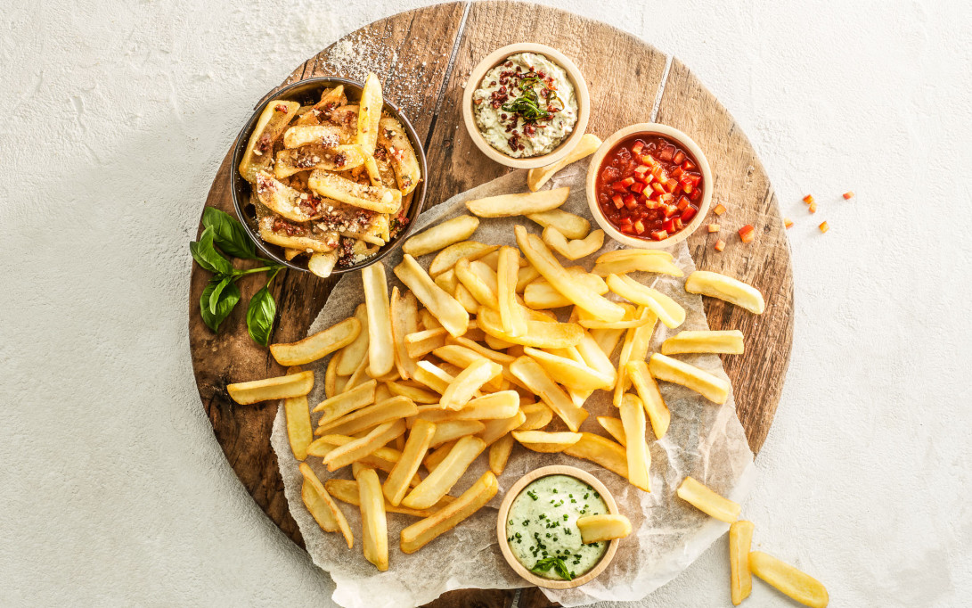 Crispy dippers con tomates secos y pesto de nueces